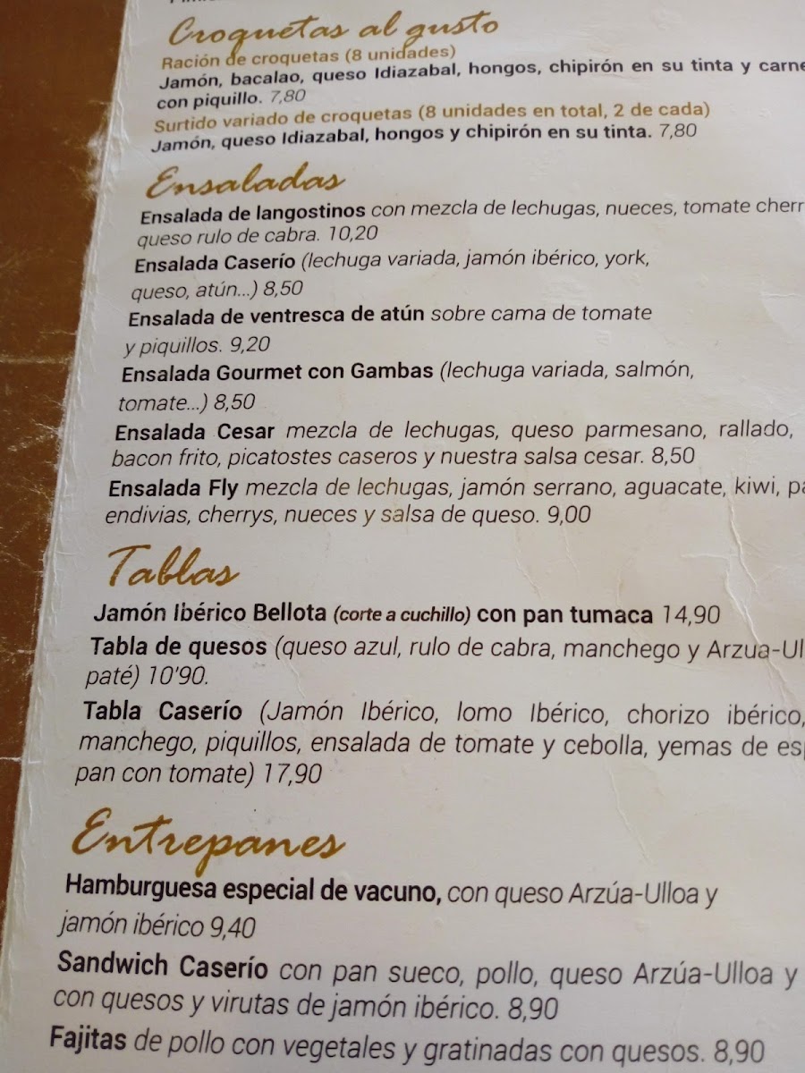 The restaurant’s salads stand out for their freshness and variety, such as the Ensalada Caserío combining jamón ibérico and tuna, and the elegant Ensalada de Ventresca de Atún served over ripe tomatoes and piquillos. Paired with a thoughtful drink menu—ranging from refreshing Cervezas to classic Nestea—the dining experience is complete.